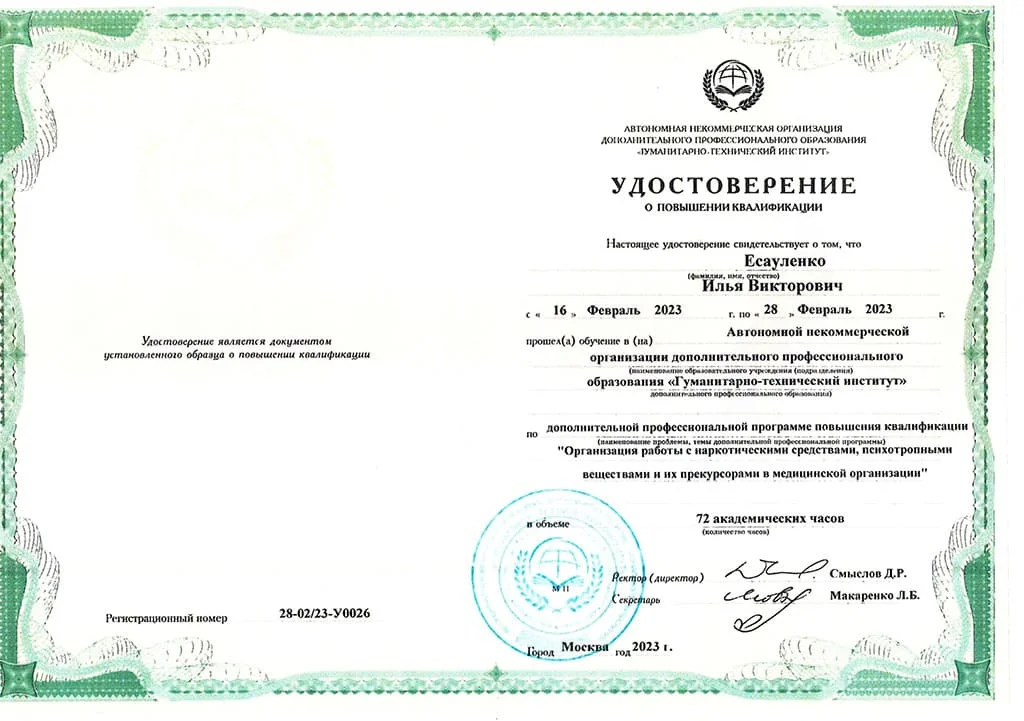 - Консультация аддиктолога